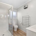The stylish master bedroom features two walk-in wardrobes, an ensuite, heat pump, and direct access to the deck. Two additional double bedrooms each include double built-in wardrobes and their own heat pump for year-round comfort. A beautifully finished family bathroom and a separate laundry with outdoor access add to the homes thoughtful layout.