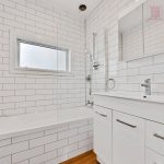 A central hallway services 2 x queen sized bedrooms. The master has a walk-in robe, The 3rd a double bedroom. All bedrooms have carpet. The family bathroom is a practical space, it features a bath and shower, heater and extraction fan, vanity and mirror.