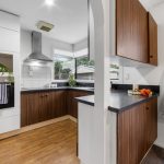 The spacious kitchen is a chef’s delight and offers a double oven and gas cooktop with a large island benchtop, breakfast bar, and ample storage which captures the morning sun so you can gaze out and take in lovely and serene views of your private garden.