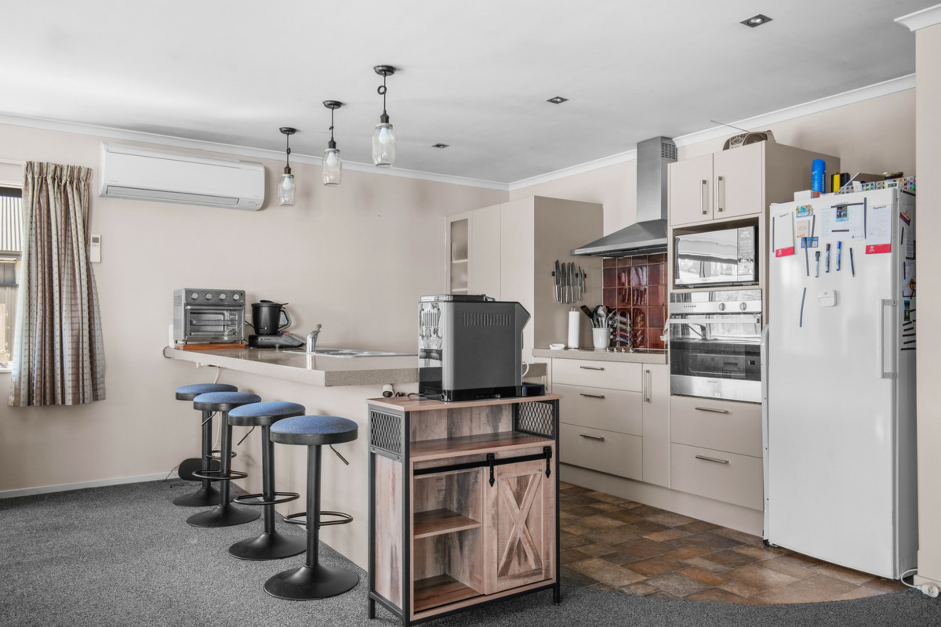 Comfort is assured year round with a log burner on wetback and a heat pump while the double internal access garage adds everyday convenience. A real bonus is the detached storeroom or office, ideal for working from home, hobbies or extra storage plus the off street parking.