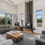 Step inside and be welcomed by a light-filled, beautifully finished interior. Spread across two levels, the home offers three generous bedrooms – each with built-in robes, including a walk-in wardrobe in the primary suite and two stylish bathrooms with modern fittings, tiled floors, glass showers, and the luxury of underfloor heating for cosy, year-round comfort. The kitchen impresses with quality appliances, a spacious island bench, sleek joinery, and a tiled splashback. The open-plan dining area flows effortlessly to the outdoors, while the living and entertaining spaces capture stunning views of the Pisa Range from the lounge, enhanced by a warm log burner, heat pump, and soundproofing in the lounge for peaceful enjoyment. A separate downstairs guest W.C. adds practicality and convenience.