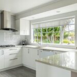 The kitchen balances modern updates with its classic heritage, retaining a wall of original cupboards complete with built-in sugar, flour, and bread bins. A small hallway leads to a bathroom and laundry, with potential to relocate the laundry to the spacious double garage in the basement and introduce an internal staircase.