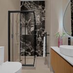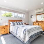 Upstairs, three light-filled bedrooms offer elevated views across to Rangitoto, enhancing the home’s sense of grandeur. A study/ second living room and a downstairs guest bedroom provide additional flexibility for those who work from home or need extra space for family and visitors.