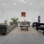 At the heart of the home, the striking Jacobean-style staircase in the formal entranceway sets the tone, showcasing the craftsmanship of its era. To the right, elegant lounge and dining rooms are separated by cavity sliders, offering flexibility in their use. The lounge features a cosy fireplace, while French doors in the dining room open to a generous rear deck that captures the afternoon sun – perfect for entertaining.