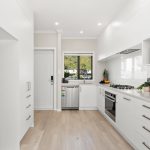 Spread over 80sqm, this contemporary home is designed for effortless living. The open-plan layout downstairs is elevated by a generous 2.7m stud, enhancing the feeling of space and light throughout. The sleek kitchen is a standout, complete with engineered stone benchtops and quality Fisher & Paykel appliances – ideal for home cooks or rental appeal.