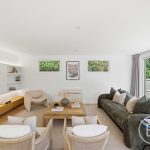 The rooms for living and relaxing are designed to allow for connection and privacy in equal doses. The upper-level stuns with seamless open-plan lounging and dining, positioned around a central gas fire, finished in oak veneer and schist stone.
